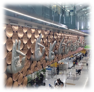 ナマステ。午後五時デリーに到着。日本との時間差は三時間半だから、日本では夜の八時半か。空港には、「ムドラ」といって、瞑想やヨガをする時の指の形をしたオブジェが並んでいる。