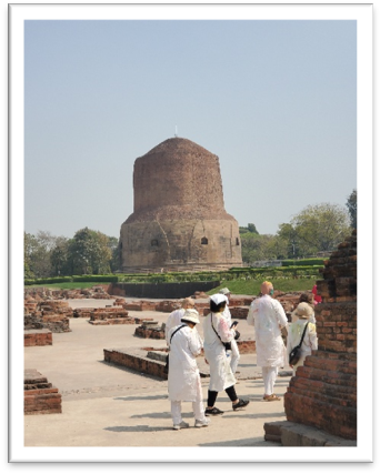 もみくちゃにされたカラフル集団は、そのままの姿で次の場所へ移動する。お釈迦さまの初めての説法の地、サールナートの考古博物館へ。なんと、汚れたままで入館して良いというからビックリだ。油断をしていると警備員からも「ハッピーホーリー」を受ける。警備員はポケットに粉を忍ばせていたのだ。
